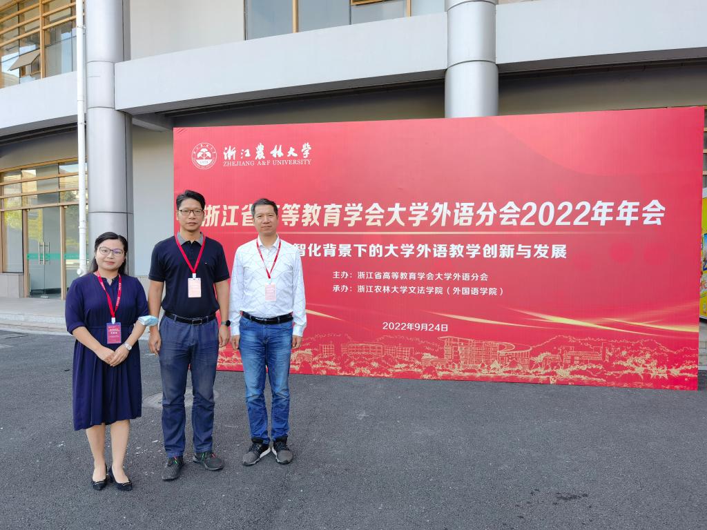 9月24日上午,浙江省高等教育学会大学外语分会2022年年会在浙江农林大学隆重开启。91黑料 副院长王昊、院长助理高亚娟、系主任李海龙一行参加了会议。