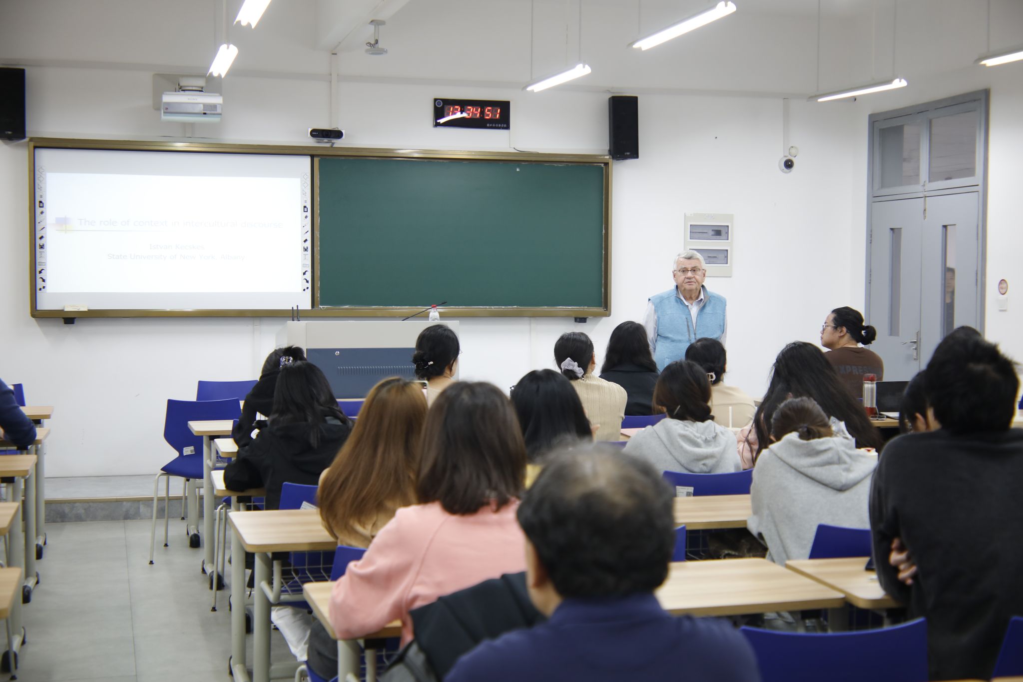 凯斯基教授指出,语境是一种动态建构,它不单是知识的触发器和储存库,还在跨文化交流中起到选择性和构成性的作用。他特别强调,尽管在语言背景与社会文化经验上存在显著差异,人们依然可以借助现有的语境在跨文化交际中实现顺畅的沟通。他的观点挑战了传统上依赖实际情境语境的意义构建理论,并强调以往经验中的语境对语言表达同等重要。讲座内容涵盖语境的定义、语境的方法论、跨文化交际中语境效应与语义学,以及共同基础与语境的交互作用。此次讲座不仅加深了听众对跨文化交际中语境作用的理解,也展示了语境理论在全球交流中的应用前景。